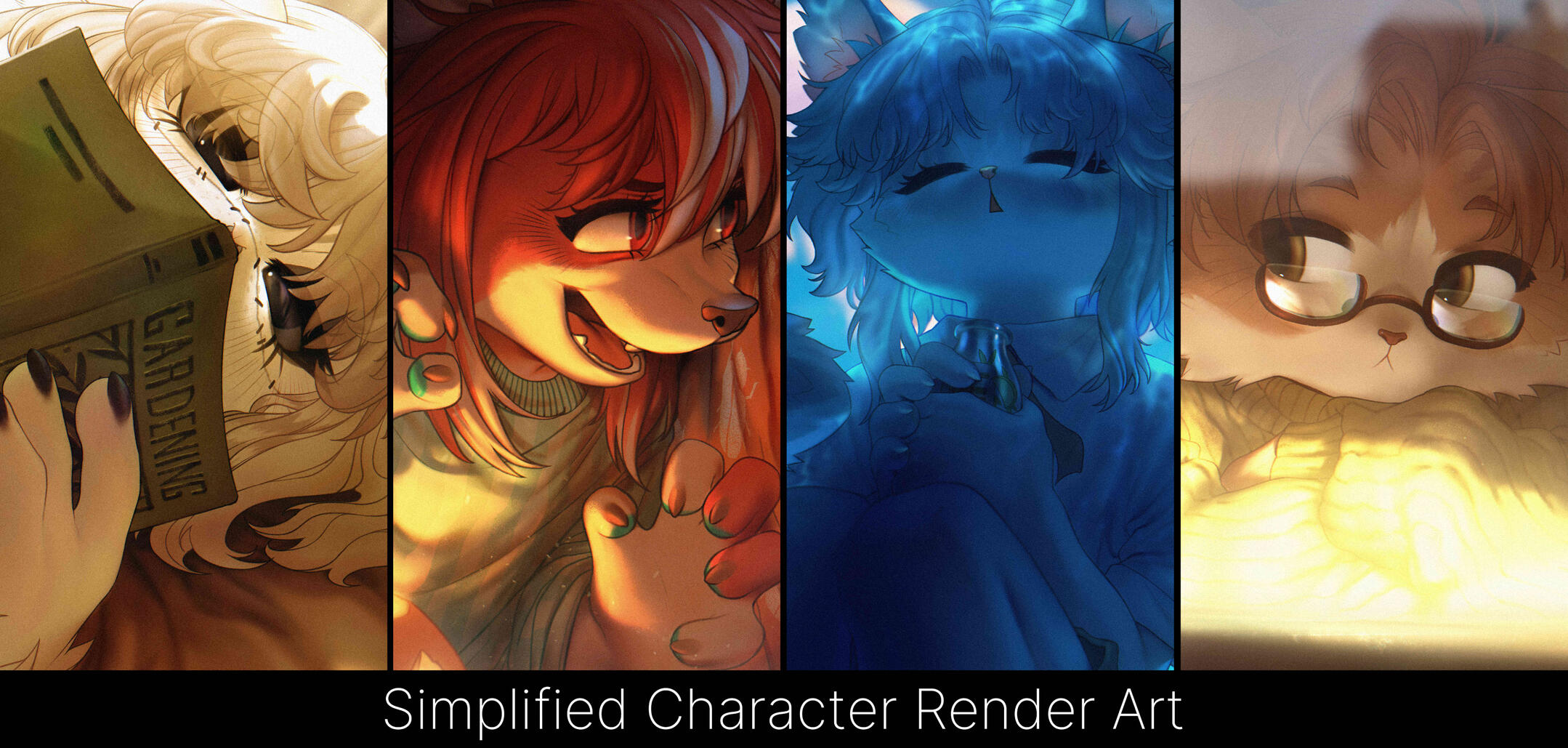 The price is scalable when your request is particularly complex, otherwise the default values are used.There are two categories of scene commission: simplified and full. Portraits (bust-up), half bodies (waist-up) and full bodies are available now. Scroll below for the example links.β